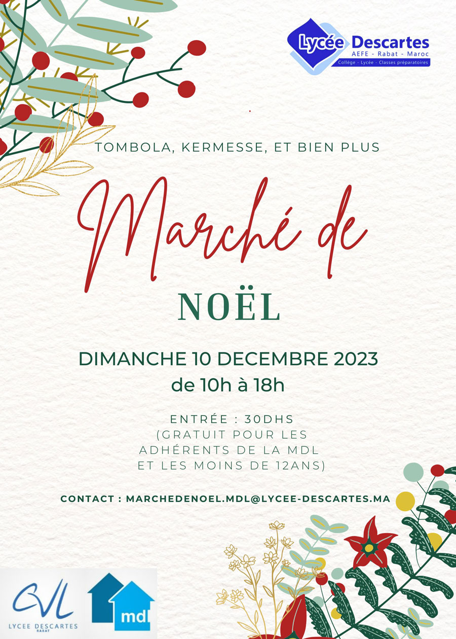 | Eco Descartes | Salle Orient | Vendredi de 12h à 14h | Estelle DERRIEN ALIX | ecodescartes@lycee-descartes.ma |